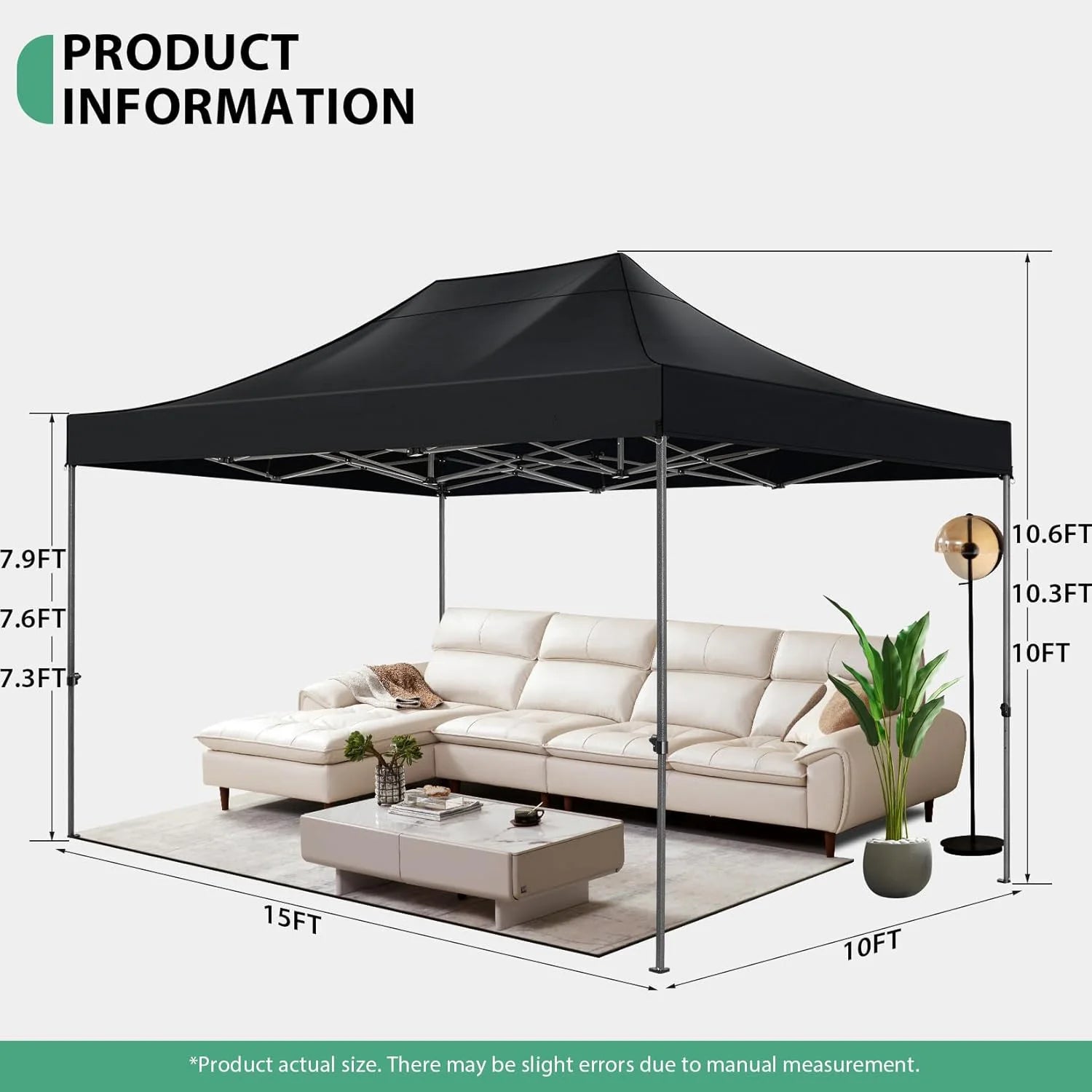 10'x15' Commercial Grade Pop Up Canopy, Heavy Duty Party Tent with 300lb Load Capacity, Waterproof Outdoor Event Shelter