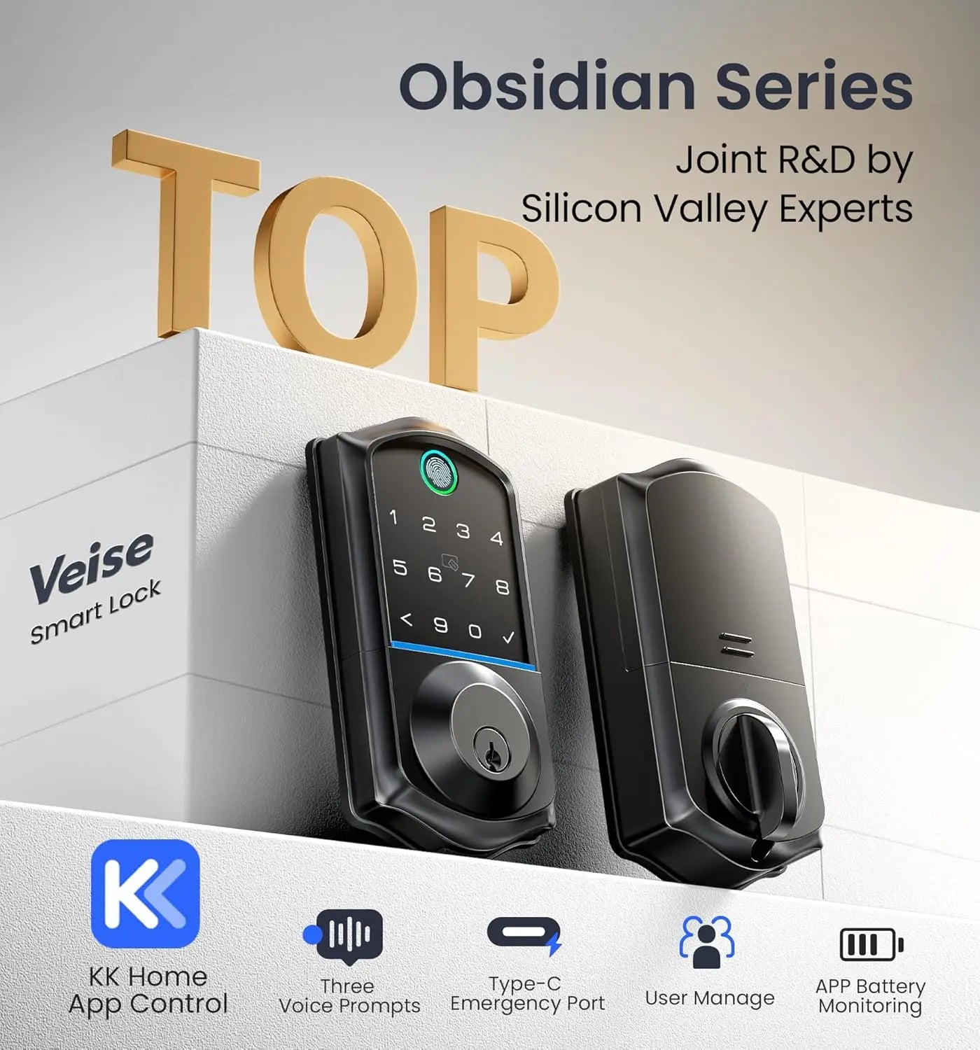 Veise VE07 Fingerprint Smart Door Lock, 7-in-1 Keyless Entry Deadbolt with App Control, Electronic Digital Touchscreen Keypad